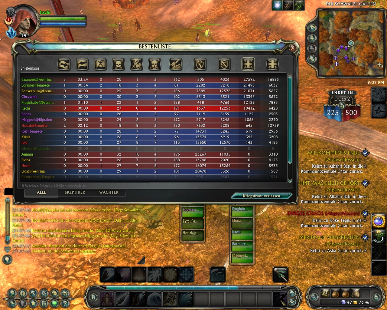 Ich habe mich aufs Heilen beschränkt und war auch immer recht weit oben in der Liste dabei. Ich habe 6 Mal gespielt und 6 Mal gewonnen.